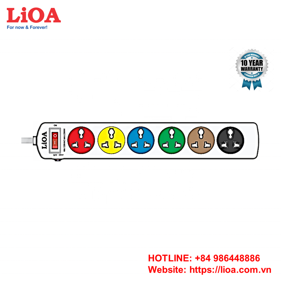 เต้ารับต่อขยาย6ช่อง2200W พร้อมสวิตช์220VAC/10A สำหรับบ้านและสำนักงาน6DNW3.2.10ปลั๊กและซ็อกเก็ตทั่วไป