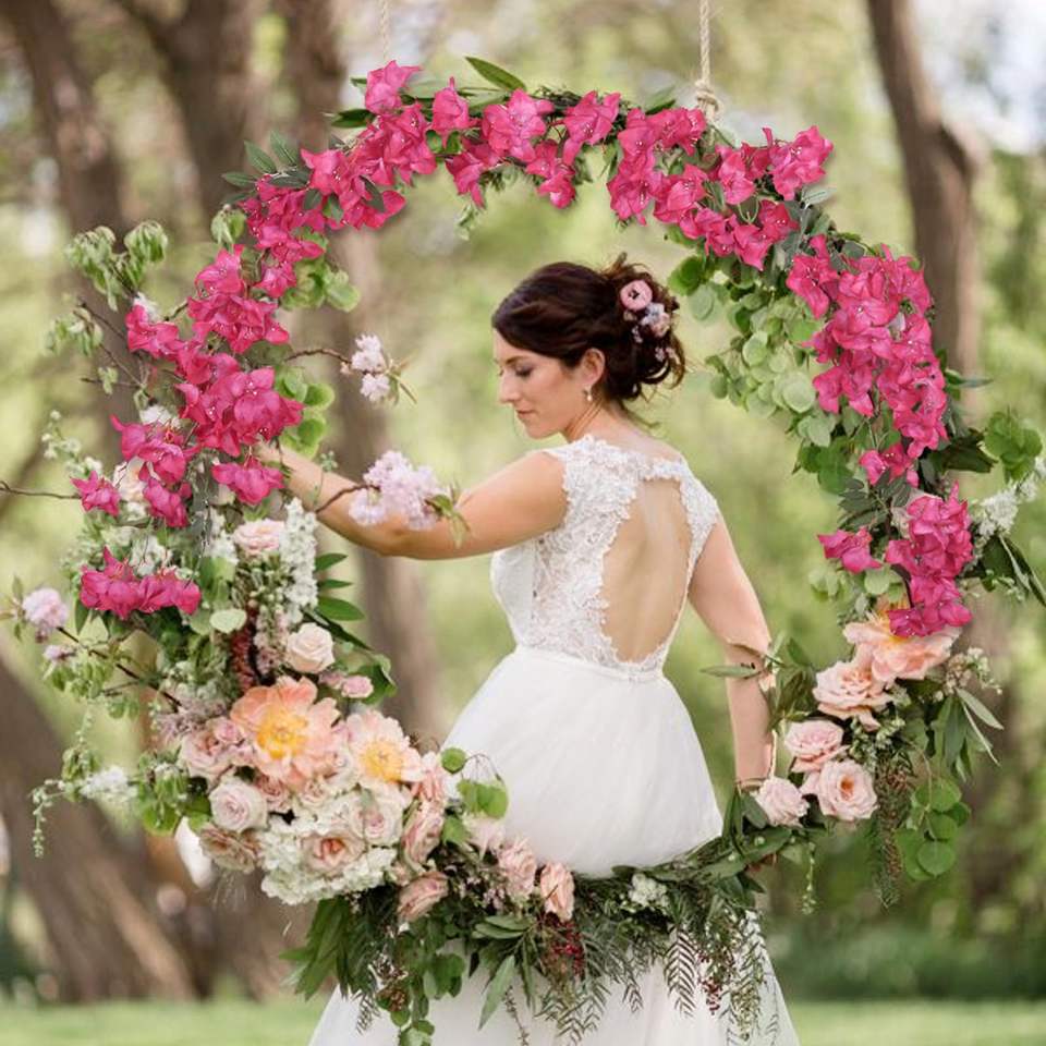 พวงมาลัยดอกกุหลาบประดิษฐ์ทำจากผ้าไหมเถากุหลาบเทียมขนาด220ซม. พร้อมพืชสีเขียวตกแต่งซุ้มประตูสำนักงานในบ้าน