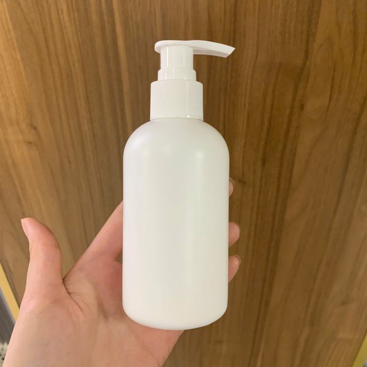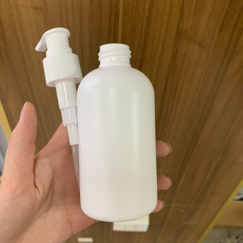 ขวดปั๊มพลาสติก HDPE สีขาวขนาด220มล. ขวดจ่ายโลชั่นแบบเติมได้สำหรับแชมพูครีมอาบน้ำบรรจุภัณฑ์เครื่องสำอาง