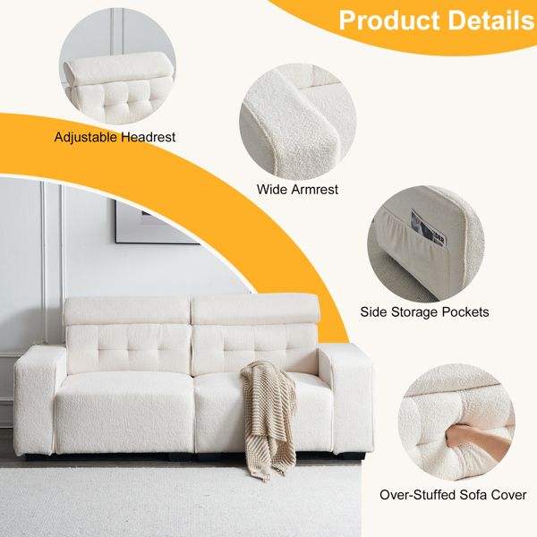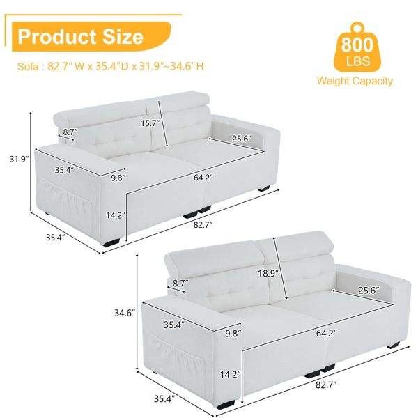 221*96*83เซนติเมตรตุ๊กตากำมะหยี่26เซนติเมตรที่วางแขนถอดออกได้ทั้งหมดสองที่นั่งพนักพิงกระเป๋าด้านข้างดึงจุดในร่มโซฟาคู่ Off-สีขาว