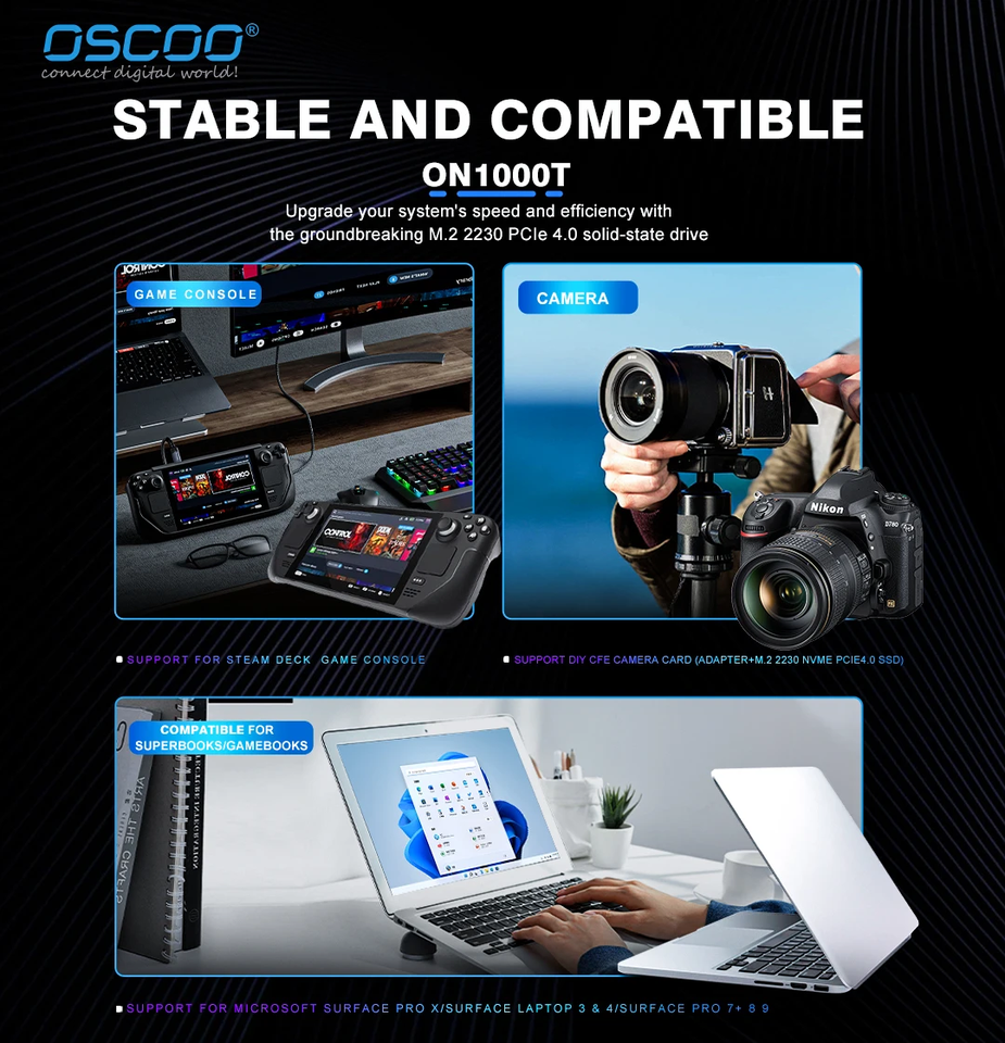 สำหรับ oscoo ON1000T 2230 NVMe SSD 512GB 1TB คอนโซลดาดฟ้าไอน้ำ M.2 PCIe4 SSD 2TB ฮาร์ดไดรฟ์ Dur M2 NVMe SSD 5200เมกะไบต์/วินาที