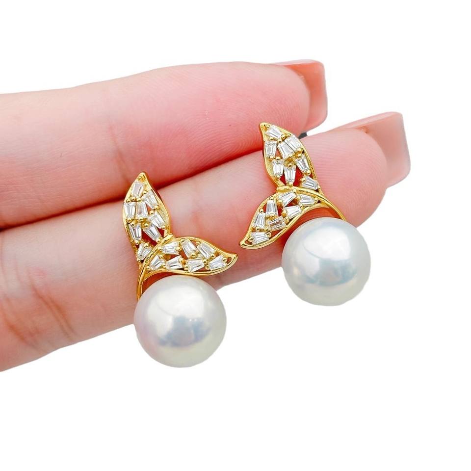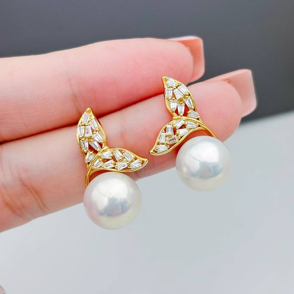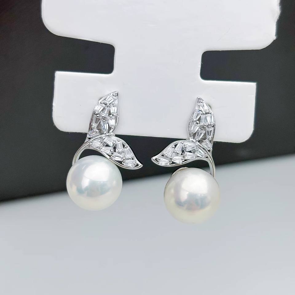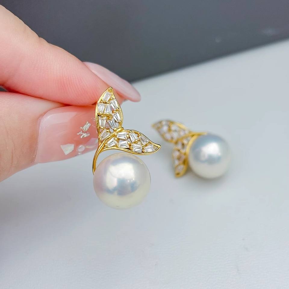 ต่างหูเงินแท้ S925 รุ่น 22383 สำหรับงาน DIY ประดับมุก พร้อมถาดเปล่าและห่วงสำหรับใส่ลูกปัดกลมขนาด 10-12 มม. สำหรับออกแบบเครื่องประดับแฟชั่น