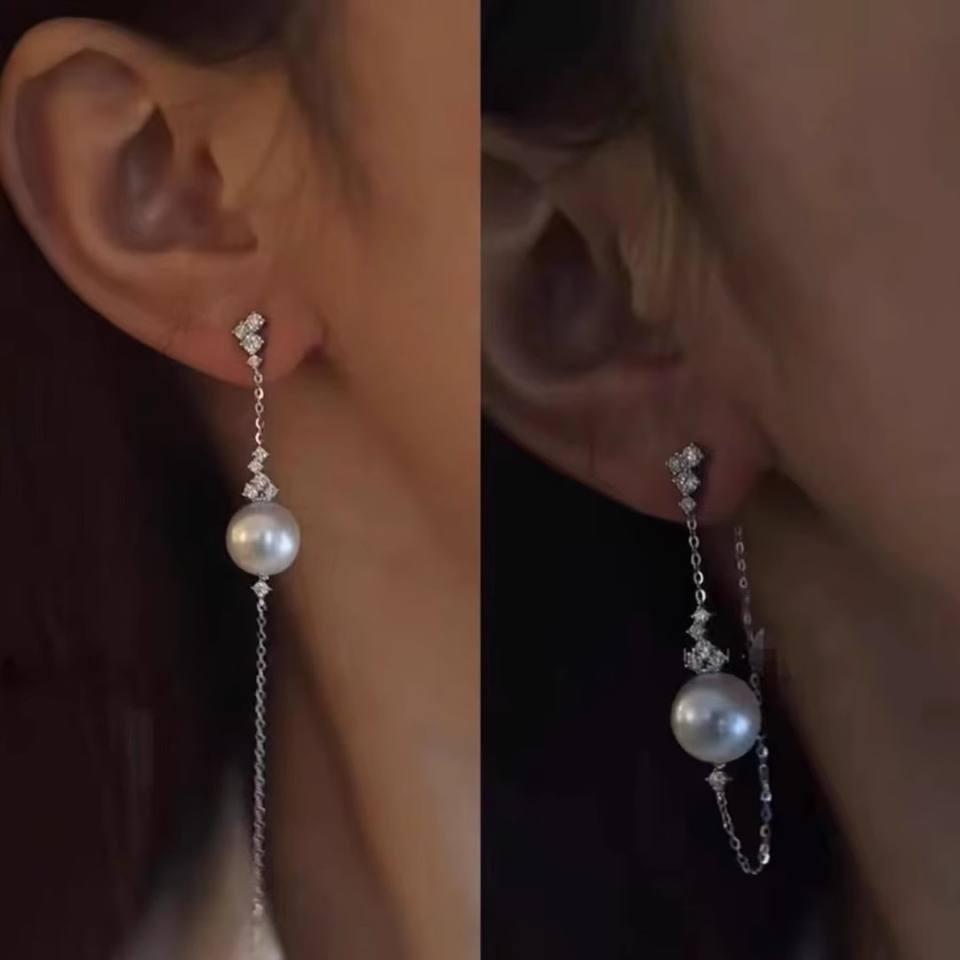 อุปกรณ์ทำเครื่องประดับมุก DIY 22409 ถาดเปล่าสำหรับต่างหูเงินแท้ S925 เครื่องประดับเงินแฟชั่น ต่างหูพร้อมลูกปัดทรงกลมขนาด 8-11 มม.