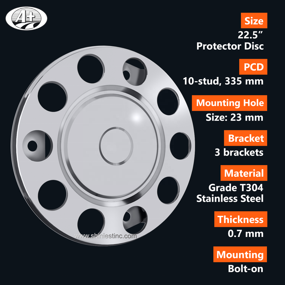 225 T304 Stainless Steel Truck/Bus Wheel Cover Protector Ring with Close Center Fitting for STEEL WHEEL (3 Brackets)