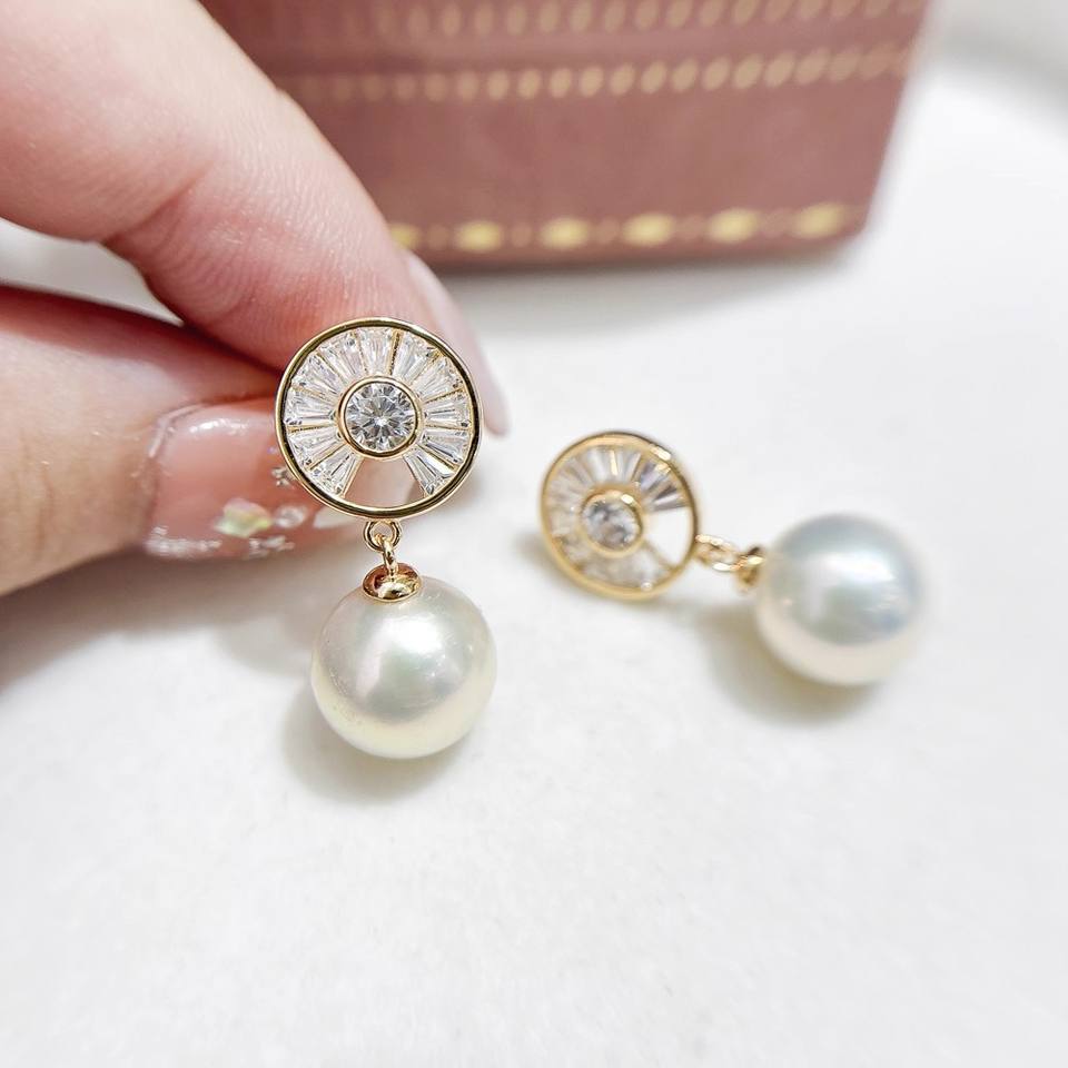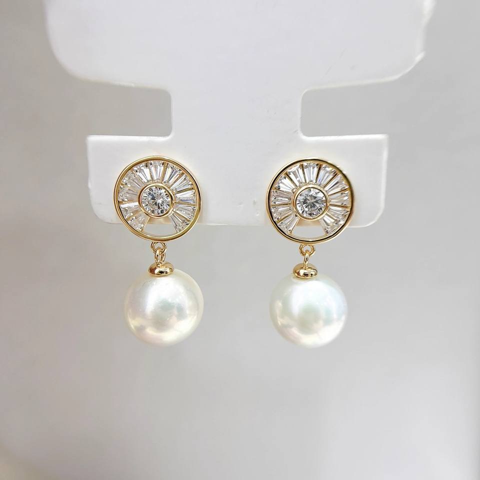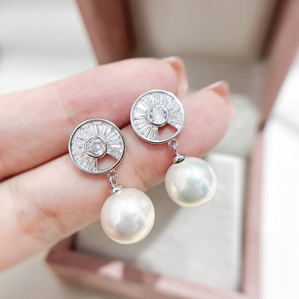 อุปกรณ์ทำต่างหูเงินแท้ S925 รุ่น 22625 พร้อมฐานเปล่าสำหรับใส่ไข่มุกทรงกลมขนาด 9-11 มม. ดีไซน์เรียบง่ายและทันสมัย