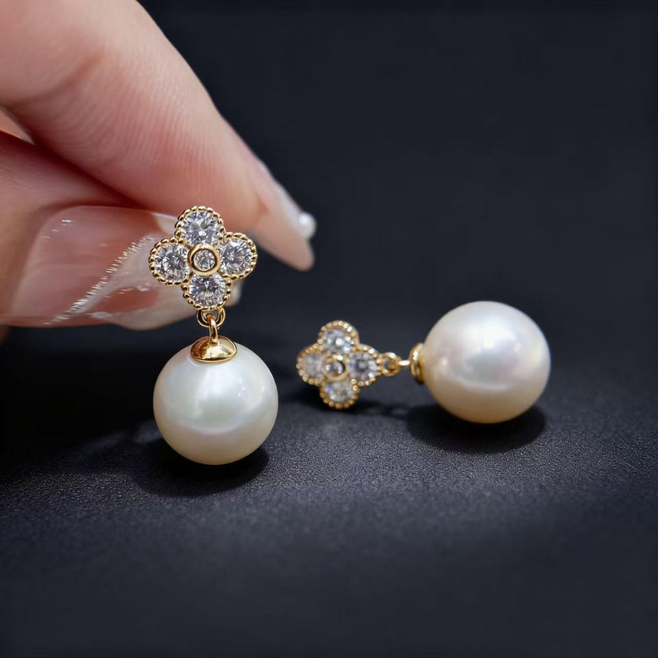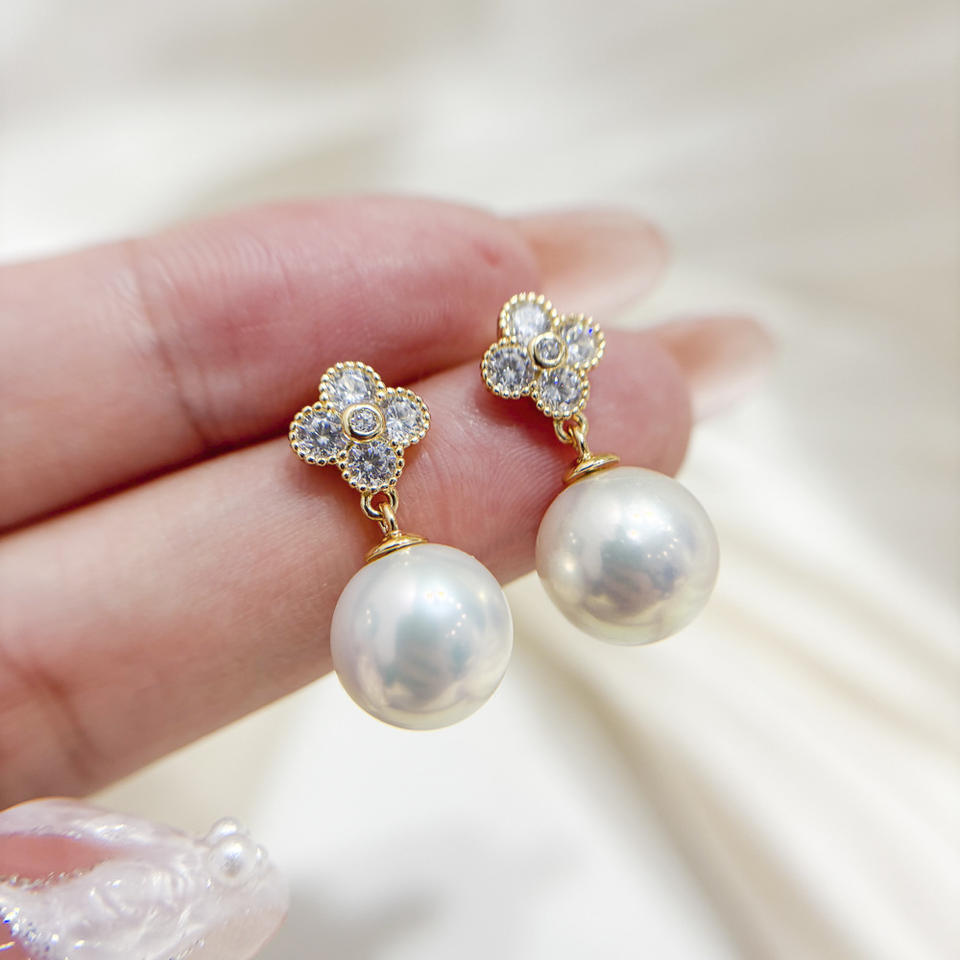 อุปกรณ์ทำเครื่องประดับมุก DIY 22697 ตัวเรือนเงินแท้ S925 สำหรับต่างหูแบบเปล่า สีทองและสีเงิน สำหรับมุกทรงกลมขนาด 9-13 มม.