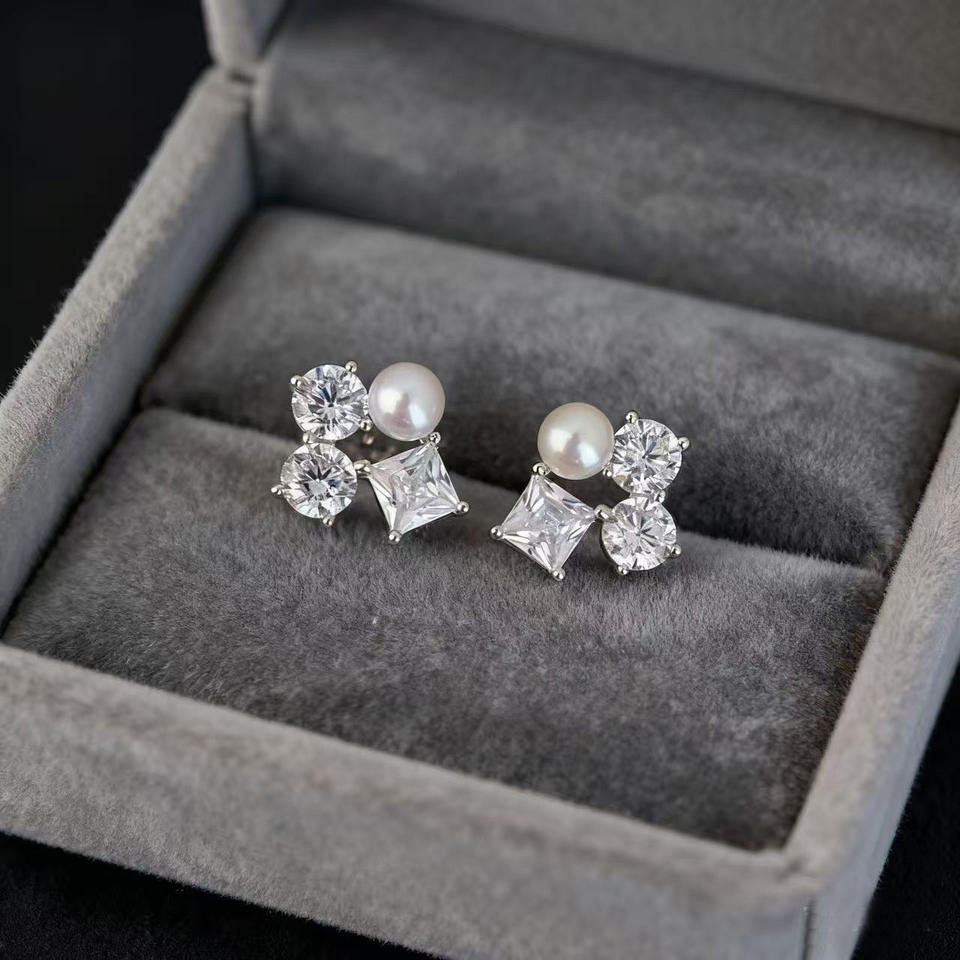 ต่างหูเงินแท้ S925 แบบ DIY ประดับมุก 22705 พร้อมฐานเปล่าและหมุดต่างหู สำหรับทำต่างหูทรงกลมขนาด 4-5 มม. ชุบทอง/เงิน