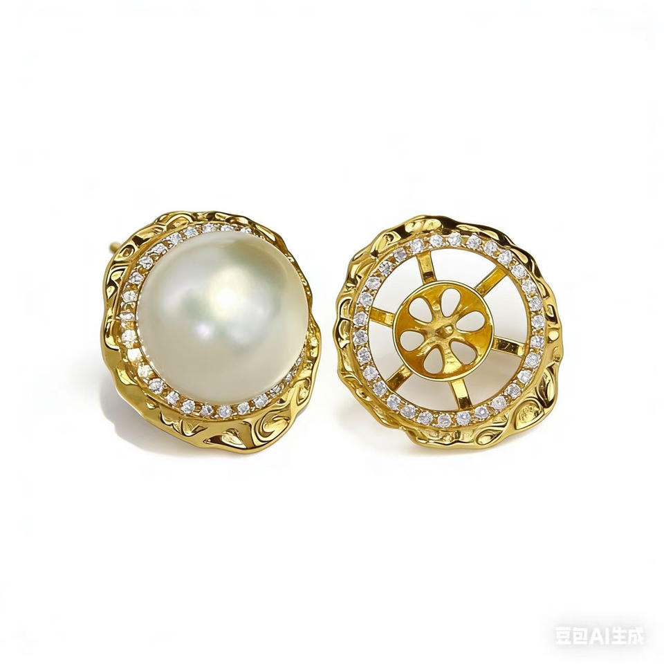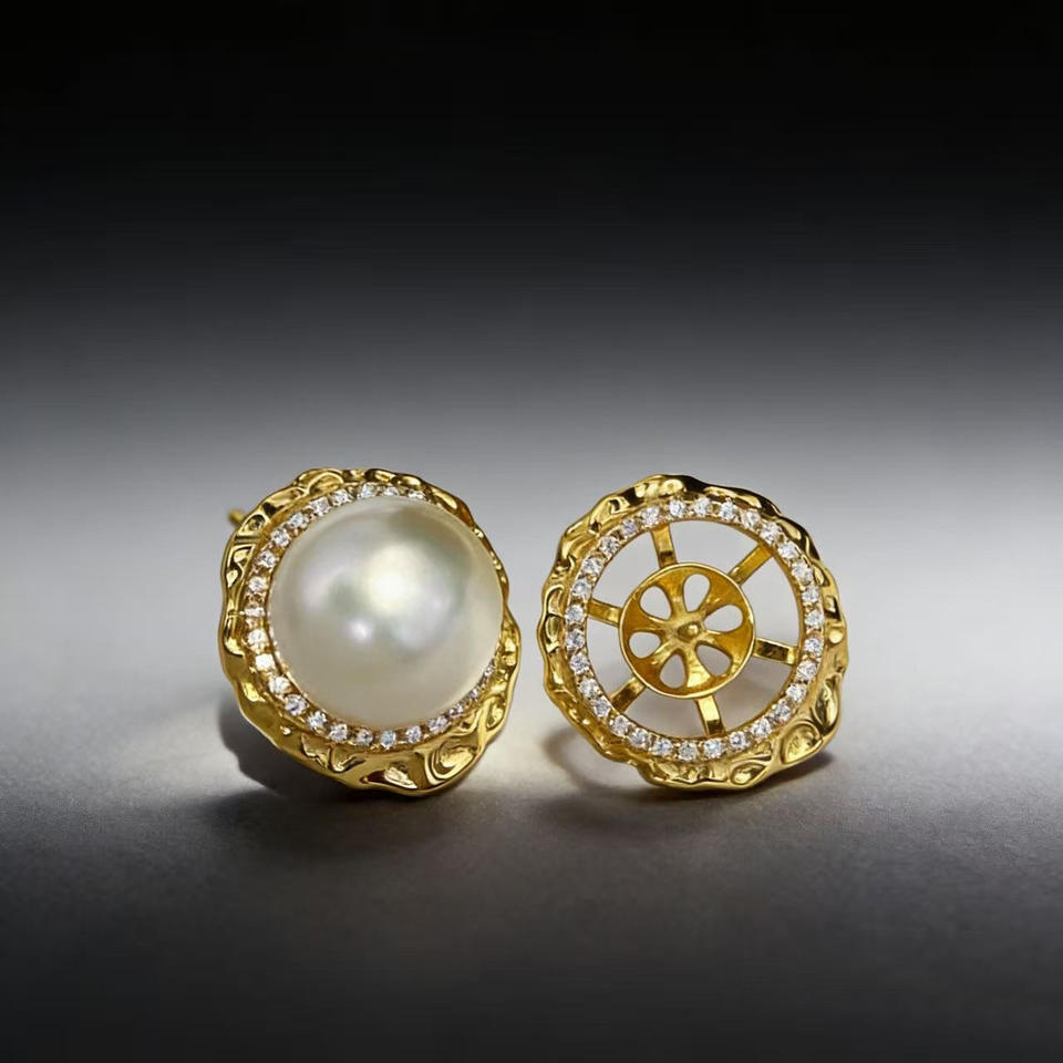 ต่างหูเงินแท้ S925 รุ่น 22708 สำหรับทำต่างหูมุก DIY พร้อมถาดใส่เม็ดมุกขนาด 11-13 มม. เครื่องประดับเงินแฟชั่น