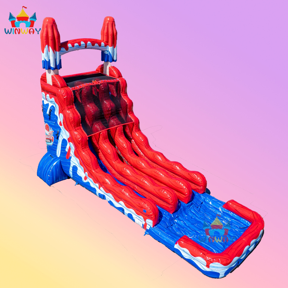สไลเดอร์น้ำสีแดง ขาว น้ำเงิน ขนาด 22 ฟุต รูปทรงไอศกรีม แบบเลนเดียว เพื่อความสนุกสนาน