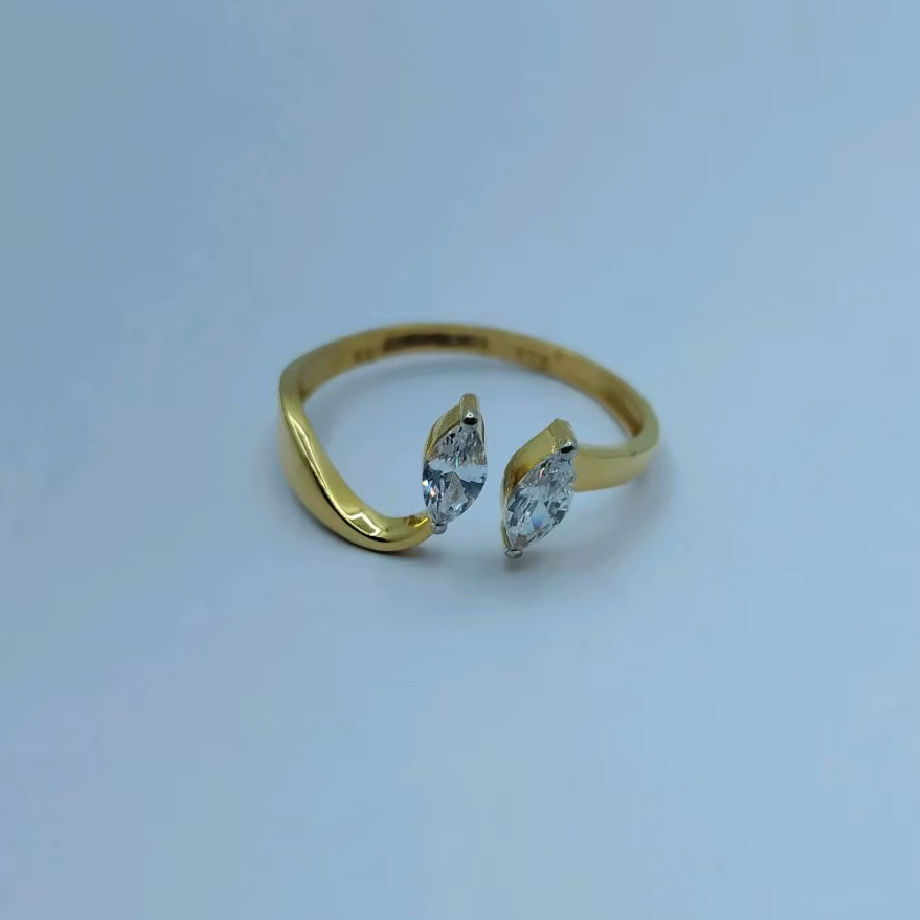 แหวนทองคำแท้ 22K (916) ดีไซน์ปีกเรขาคณิตทันสมัย ประดับเพชร CZ หรูหรา สำหรับงานแต่งงาน ผู้หญิง ราคาขายส่ง