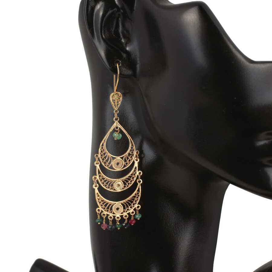 ต่างหูโคมระย้าทองคำแท้ 22K ประดับด้วยหินรูทธรรมชาติ | เครื่องประดับทำมือจากตุรกี