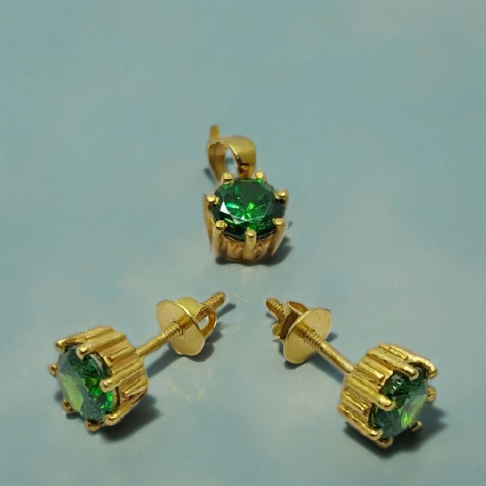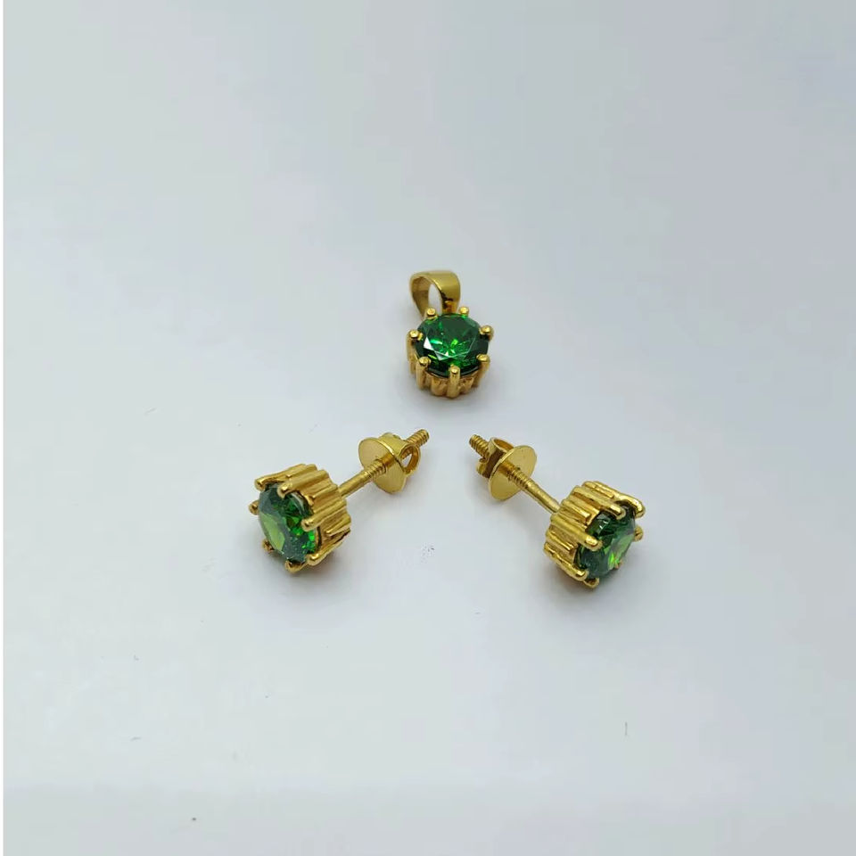 ชุดต่างหูและจี้ทองคำ 22K ประดับพลอยสีเขียว ดีไซน์คลาสสิคทรงกลม สำหรับผู้หญิง สวมใส่ได้ทุกวันและในงานปาร์ตี้