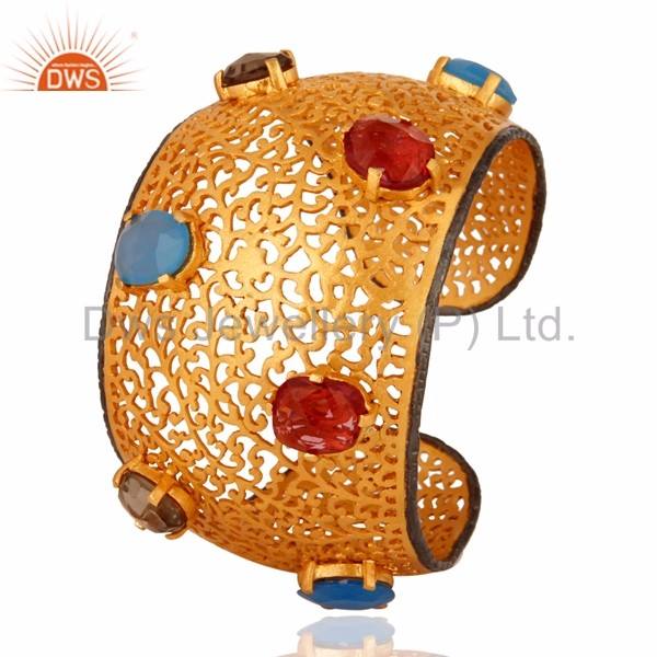 สร้อยข้อมือควอตซ์หินควอตซ์22K สีทองและหินโมราสีฟ้าดีไซน์แบบ Filigree จากผู้ผลิตและผู้ค้าส่ง