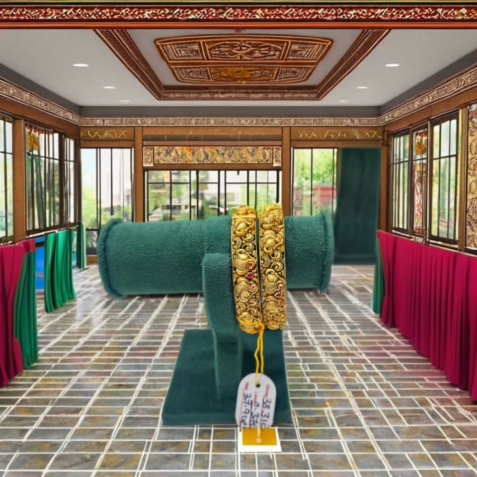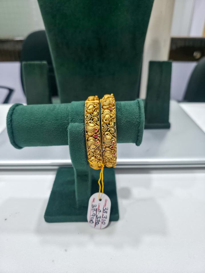กำไลทองคำแท้ 22K สไตล์โบราณ ลายวัด ประดับช้าง พร้อมพลอยสีชมพูและสีเขียว สำหรับเจ้าสาวอินเดีย งานฝีมือแบบดั้งเดิม ประดับลายนาคชี