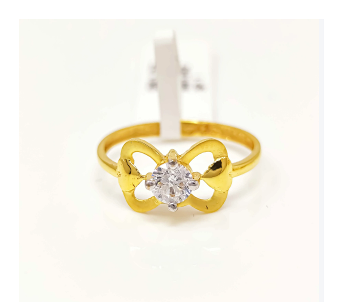 แหวนผีเสื้อทองคำแท้ 22K สำหรับผู้หญิง ทองคำแท้ 916 สีเหลือง ประดับเพชร CZ รูปโบว์ แหวนหมั้น งานแฮนด์เมด เครื่องประดับชั้นดี