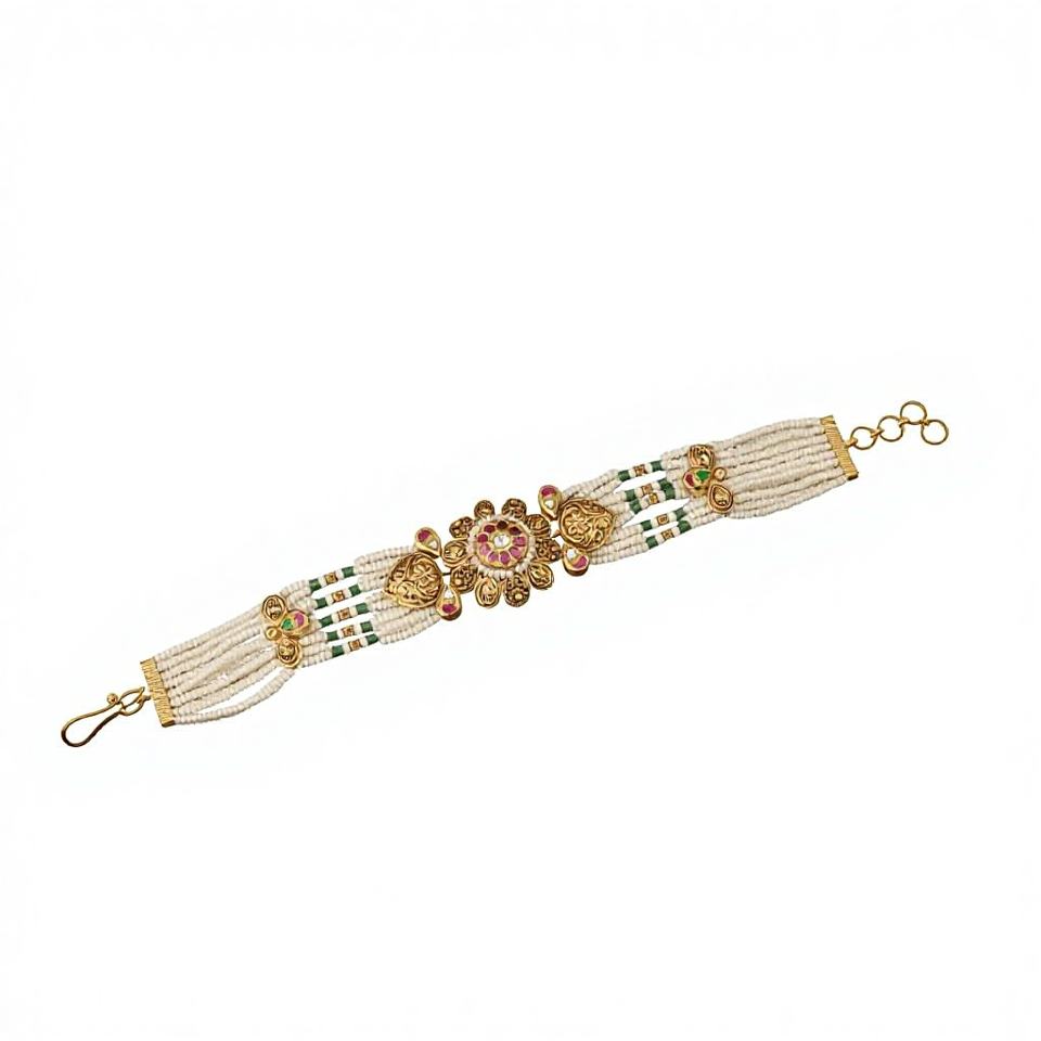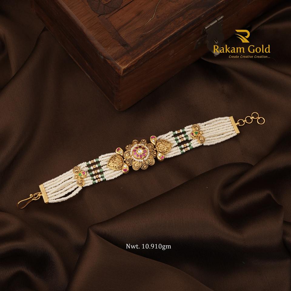 กำไลทองคำแท้ 22K ประดับดอกไม้และทับทิมสำหรับผู้หญิง สไตล์อินเดียดั้งเดิม ประดับมุกเมนาคารี กำไลข้อมือสำหรับงานแต่งงาน น้ำหนัก 10.91 กรัม