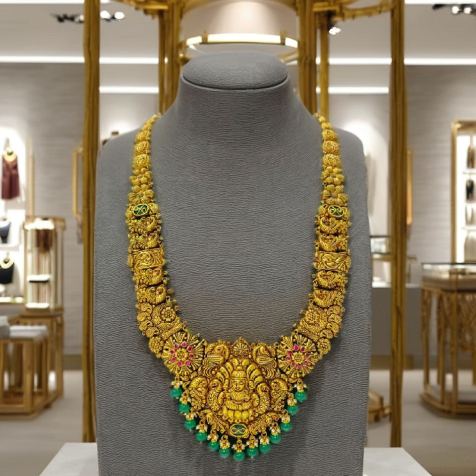 สร้อยคอทองคำแท้ 22K แบบอินเดียโบราณประดับนกยูงและไข่มุก สำหรับผู้หญิง สวมใส่ในงานแต่งงาน