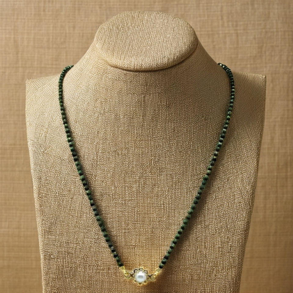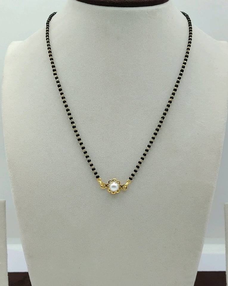 สร้อยคอทองคำชุบประดับลูกปัดสีดำพร้อมจี้รูปดอกไม้ประดับมุกเม็ดเดียวแบบอินเดียโบราณ 22K สำหรับผู้หญิง เหมาะสำหรับสวมใส่ทุกวัน