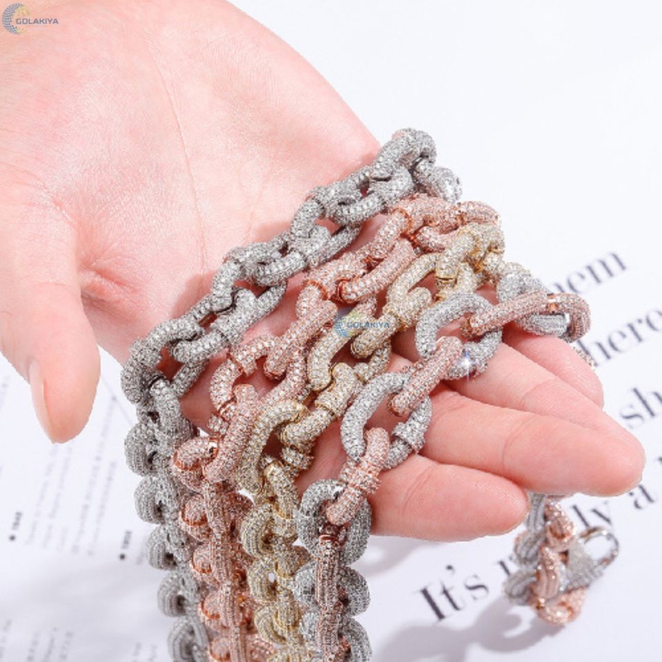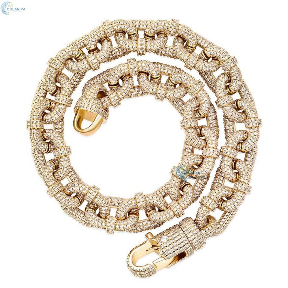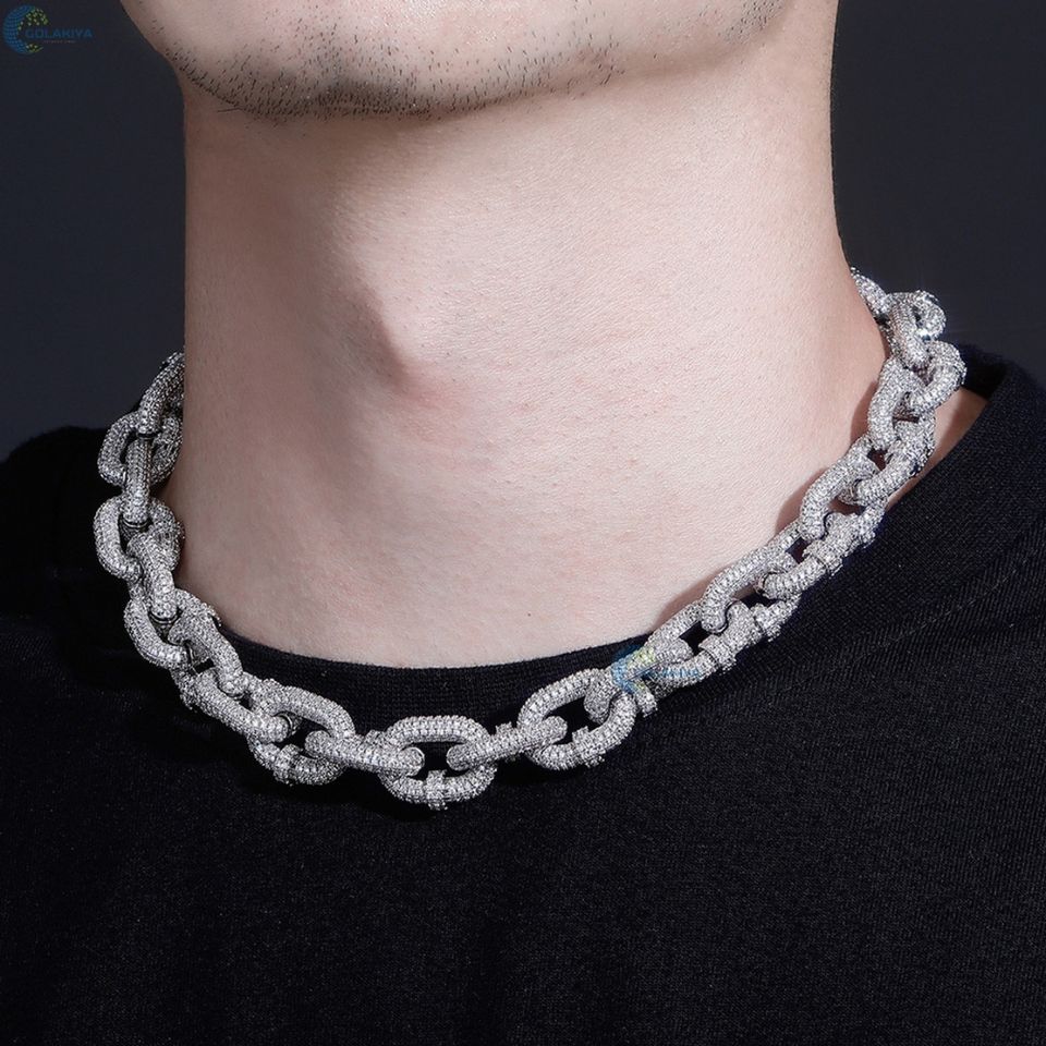 ห่วงโซ่ตะขอเกี่ยว22มม. สร้อยคอสไตล์ฮิปฮอปโซ่ห่วงโซ่เพชรสำหรับปลูกในห้องปฏิบัติการ VVS1