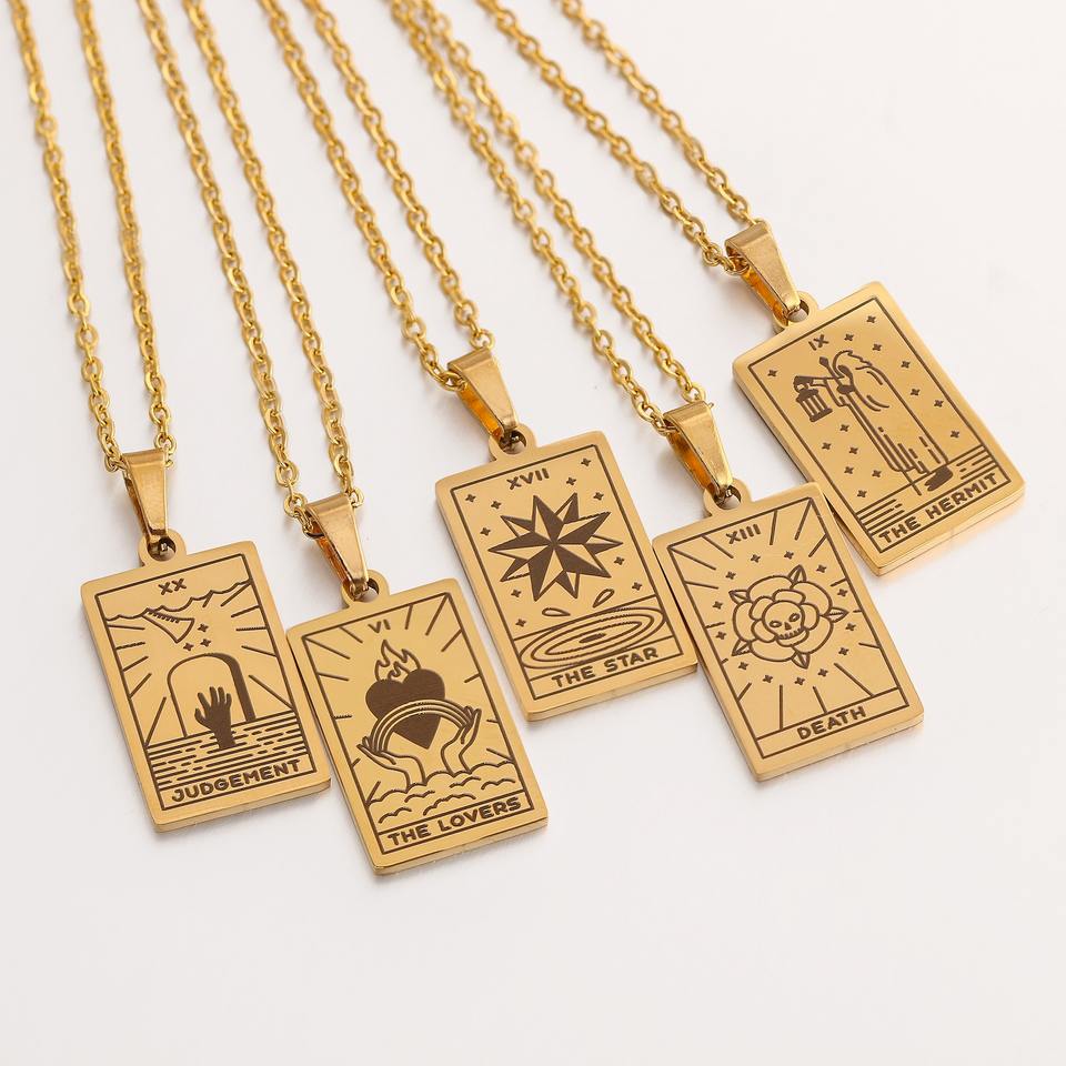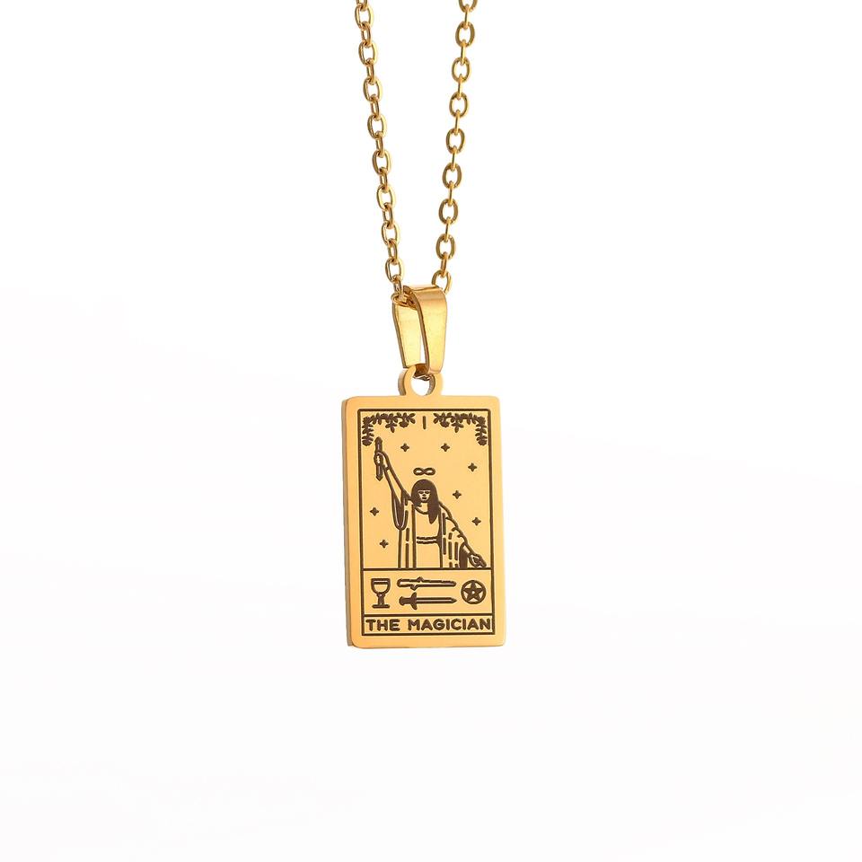 22ชิ้นทองสแตนเลสราศีไพ่ทาโรต์เครื่องประดับสร้อยคอสำหรับผู้หญิงสาวทำนายมายากลสร้อยคอโซ่เครื่องราง