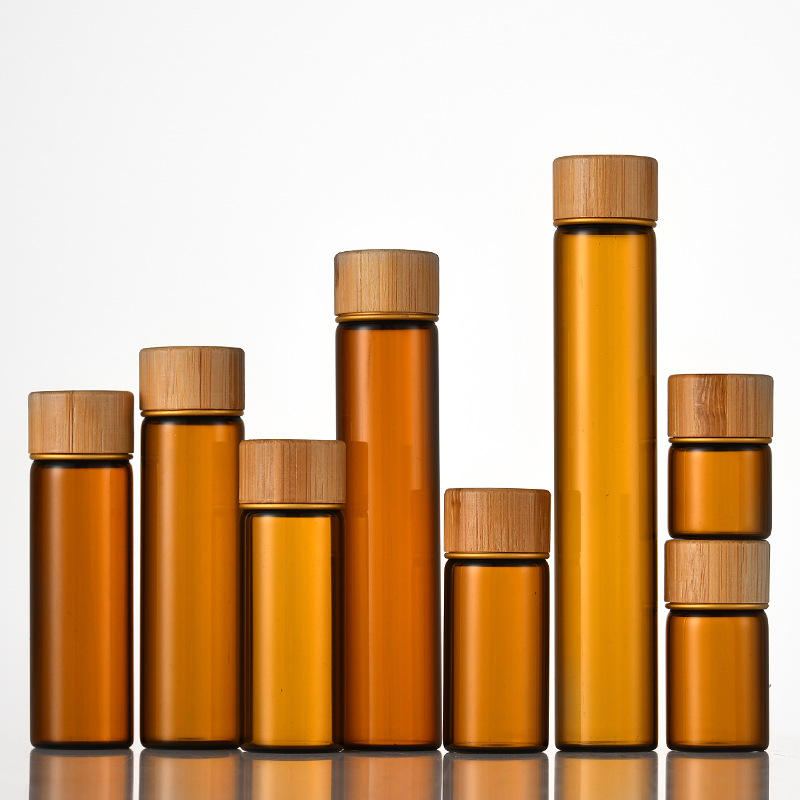 ขวดแก้วเปล่าขนาดเส้นผ่านศูนย์กลาง 22 มม. พร้อมฝาเกลียวไม้ ความจุ 5 มล.-12 มล. ตัวเลือกโลโก้แบบกำหนดเองสำหรับเก็บผงสมุนไพร