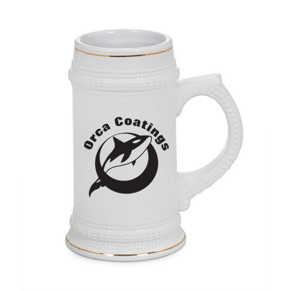 แก้วเบียร์เซรามิกสีขาวพิมพ์ลายแบบระเหิด22ออนซ์,พร้อมอุปกรณ์เคลือบสีทอง Orca Beer Stein