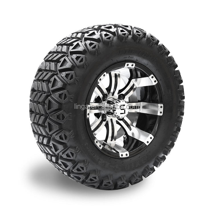 ล้อรถกอล์ฟ23*10.5-12นิ้วสีดำเงาและยางสำหรับทุกพื้นที่