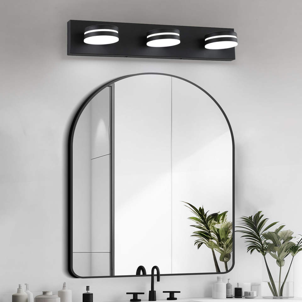 โคมไฟติดผนัง LED สีดำ 3 ดวง ขนาด 23.6 นิ้ว รุ่นโมเดิร์น ปรับความสว่างได้ 5500K สำหรับห้องน้ำหรือโรงแรม
