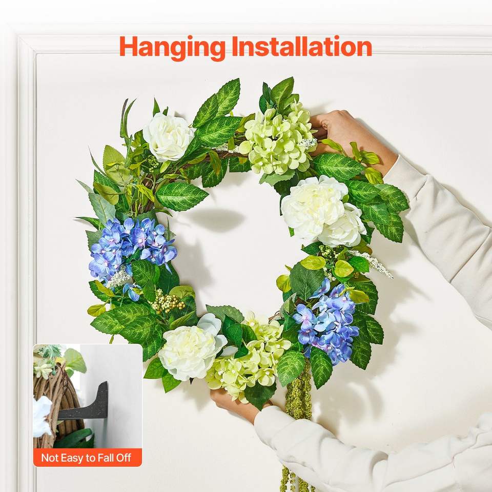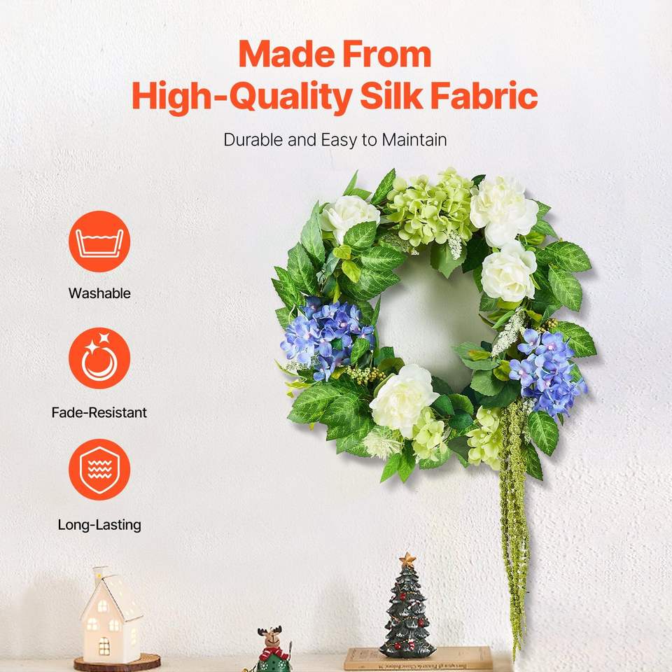 พวงหรีดดอกไฮเดรนเยียสีเขียวสีฟ้าและดอกกุหลาบประดิษฐ์ขนาด23นิ้วพวงหรีดสำหรับตกแต่งตลอดทั้งปี