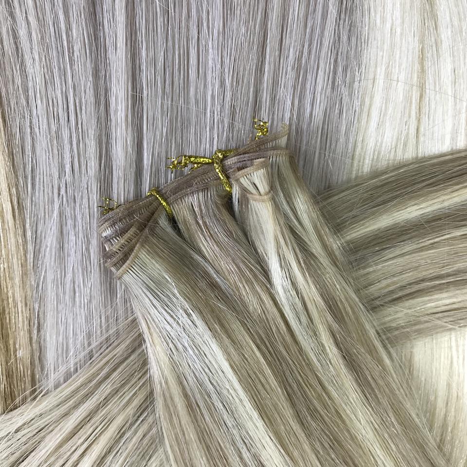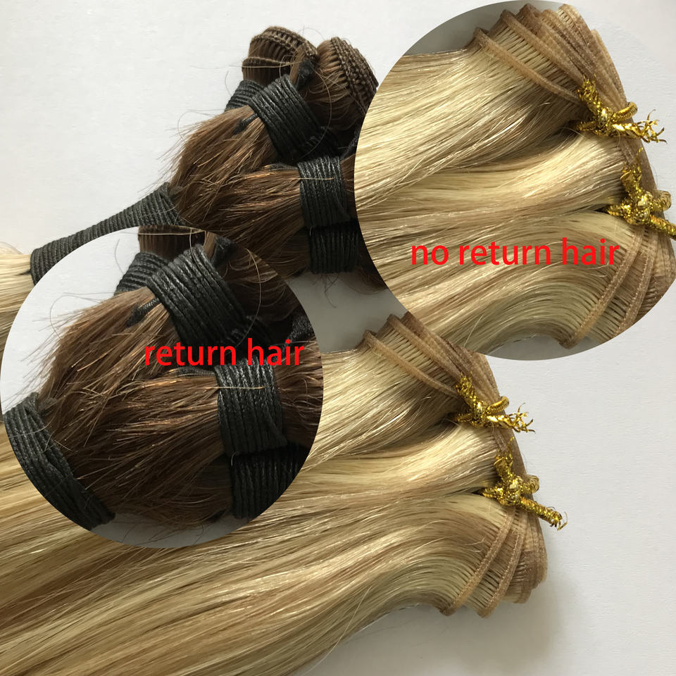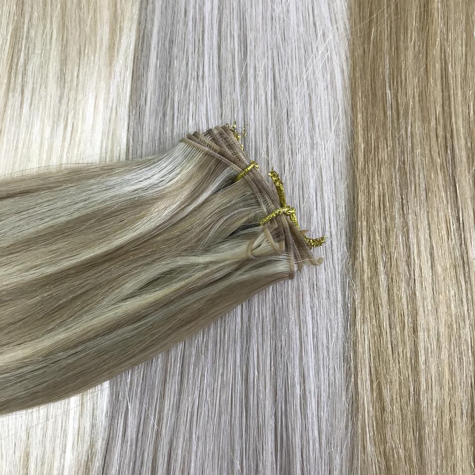 ผมปลอมสำหรับต่อผมแบบอัจฉริยะ100% บริสุทธิ์เงางามแบบผูกด้วยมือ