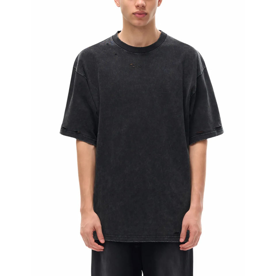 เสื้อยืดวินเทจ 230GSM ผ้าฝ้าย 100% พิมพ์โลโก้ตามสั่ง แขนสั้น ทรงหลวม สไตล์อเมริกันเรโทร ไซส์ใหญ่