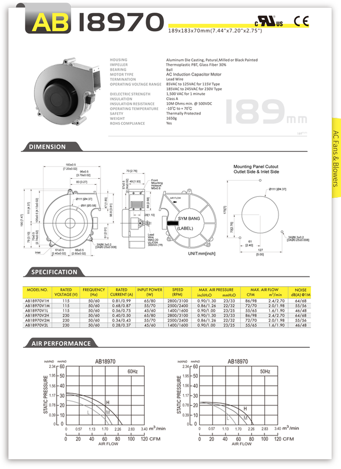 115V 2500rpm พัดลมโบลเวอร์ AC พร้อมใบมีดพลาสติกและมอเตอร์ & แบริ่งส่วนประกอบหลัก (AB18970V2M)