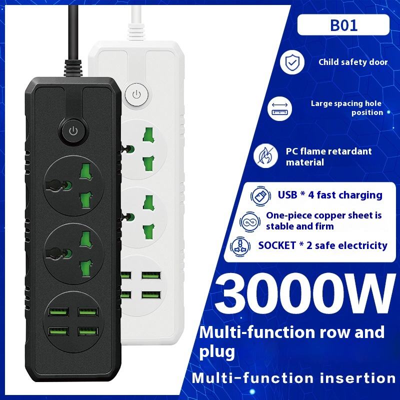 สายพ่วง USB อเนกประสงค์ขนาด230V 4พอร์ต3ม. สายสำหรับใช้ในครัวเรือนเอาต์พุต13A ABS จ่ายไฟหลายช่องทางสำหรับการส่งออกข้ามพรมแดน