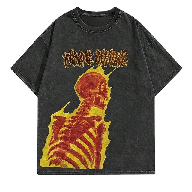 เสื้อยืดผ้าฝ้ายแท้ฟอกสี230กรัมสไตล์วินเทจทรงหลวมใส่ได้ทั้งชายและหญิงเสื้อยืดฟิตเนสสไตล์ทางการ