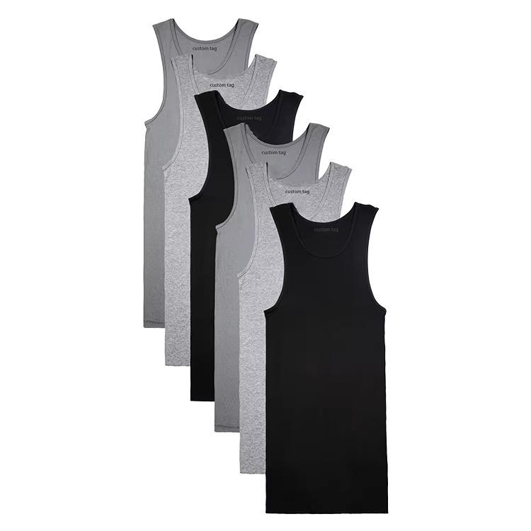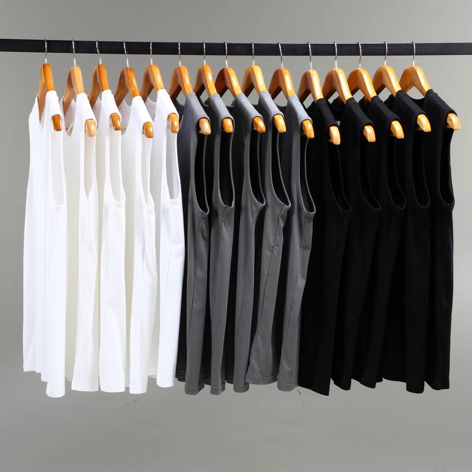เสื้อกล้ามถักนิตติ้งผ้าฝ้าย 240gsm สำหรับผู้ชาย เสื้อยืดออกกำลังกาย พิมพ์ลายโลโก้ด้านหน้า สวมใส่สบายๆ