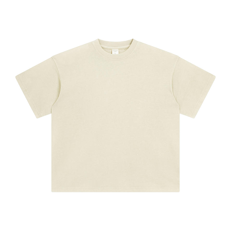 เสื้อยืดผู้ชายสีดำทรงโอเวอร์ไซส์ ผ้าคอตตอน 100% หนัก 230 กรัม ซักแบบวินเทจ ระบายอากาศได้ดี ผ้าถักเนื้อแน่น