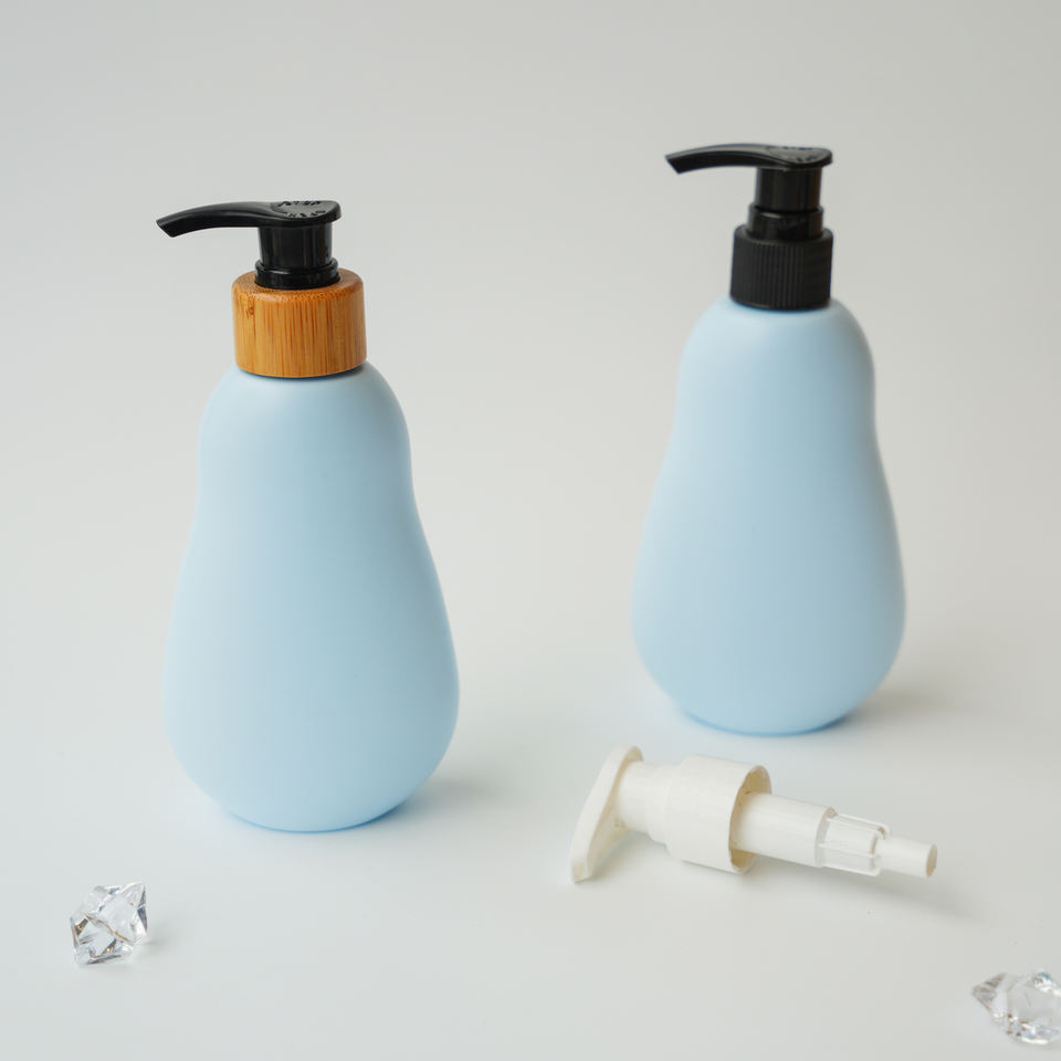 ขวด HDPE 230มล. สำหรับบรรจุภัณฑ์ดูแลร่างกายหมวกปั๊มเจลอาบน้ำสำหรับเด็กสีฟ้าฟ้าสำหรับแชมพูเครื่องสำอาง