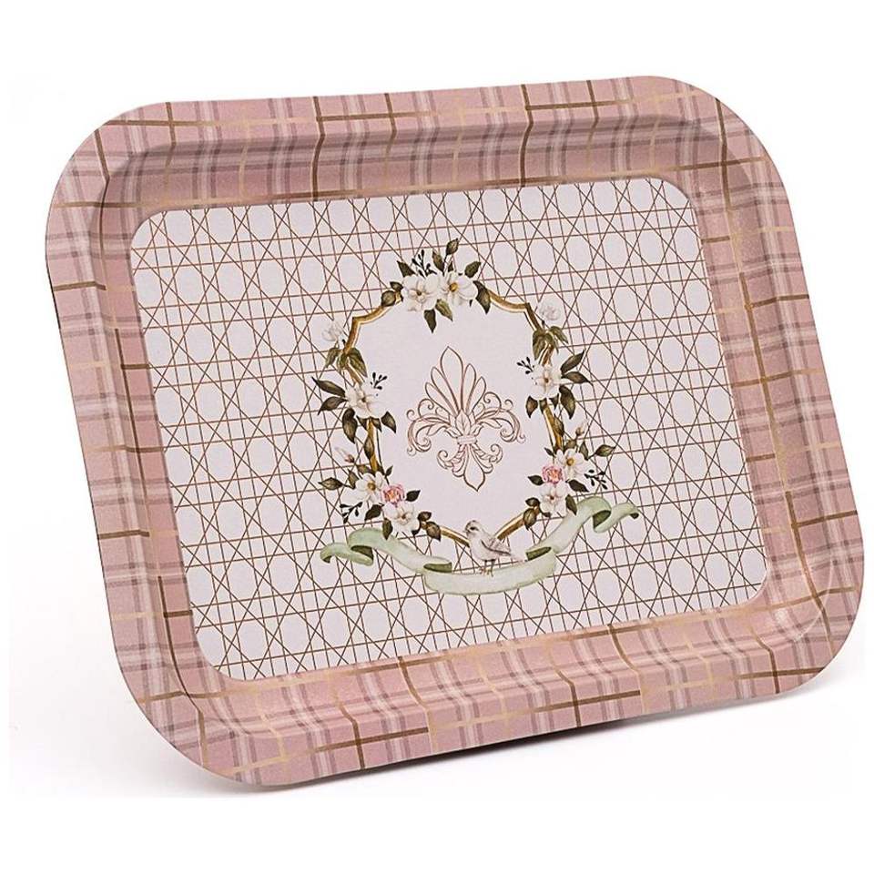 Kontensan ถาดรองโลหะทรงสี่เหลี่ยม EE161U7 233X307มม. ทำจากไก่งวงเป็นสีดอกกุหลาบสำหรับตกแต่งดีไซน์กระดูกทำจากสเตนเลสสตีล