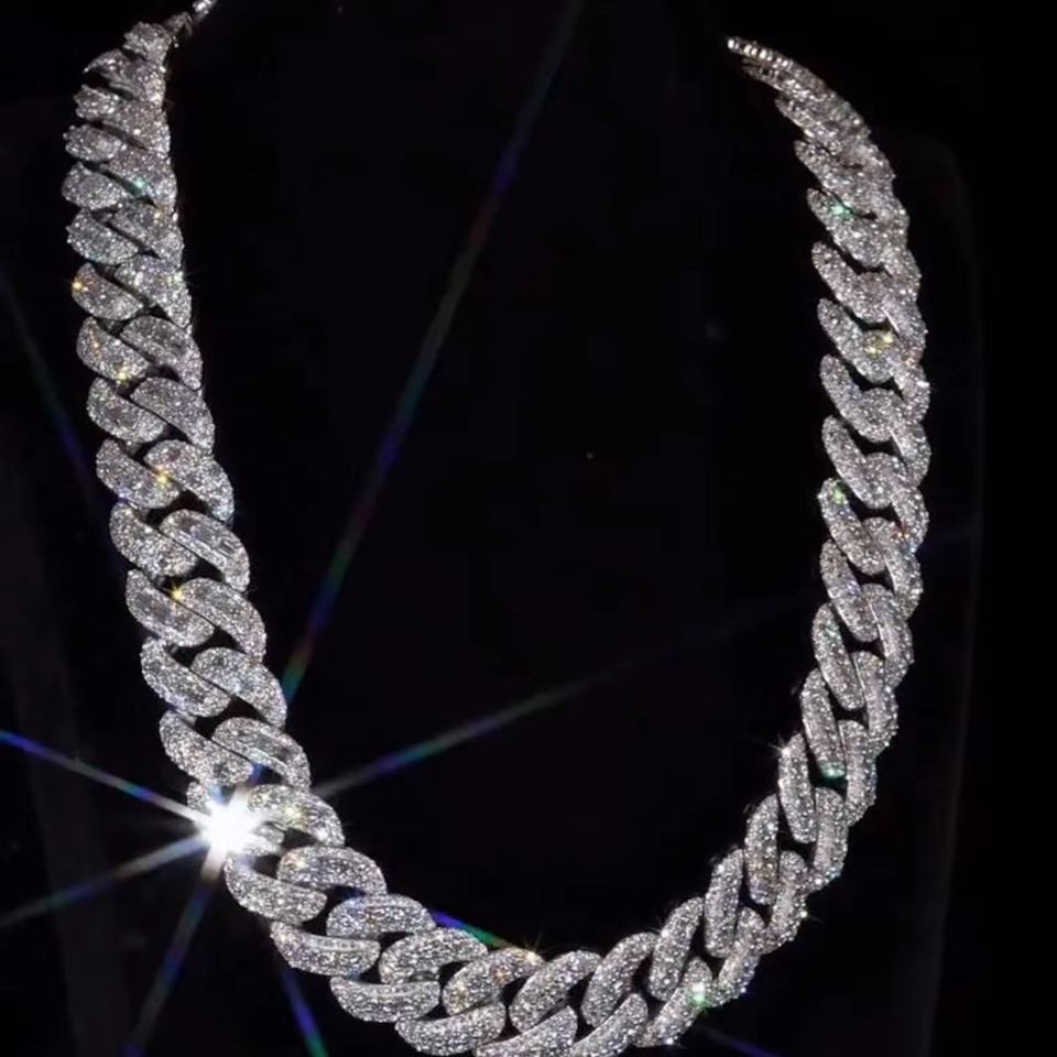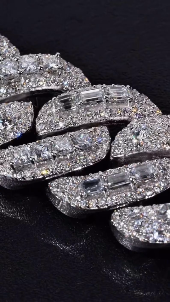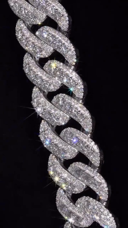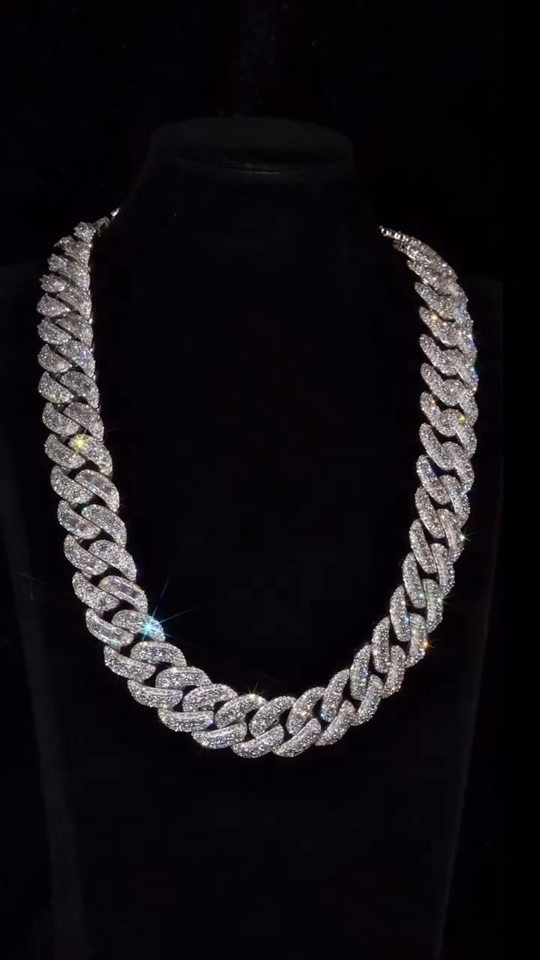 สร้อยคิวบาลิงค์มอยส์ซาไนต์ 23 มม. เงินแท้ 925 ตัวล็อคแบบเลมอน ความยาวสั่งทำได้