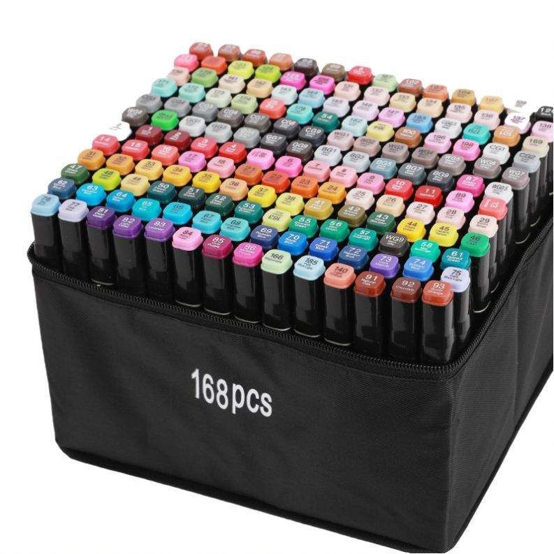 ชุดปากกาเมจิกแอลกอฮอล์หัวคู่สี 24~262 แท่ง ปากกาสีหัวแปรงสองด้าน ปากกาเมจิกแอลกอฮอล์แบบมันวาว พร้อมโลโก้แบบกำหนดเอง