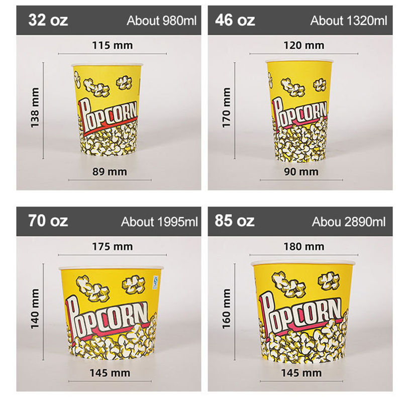 ถังใส่ป๊อปคอร์นแบบกระดาษเคลือบพิมพ์ลายถังขนาด24/32/46/64/85ออนซ์ออกแบบได้ตามต้องการ