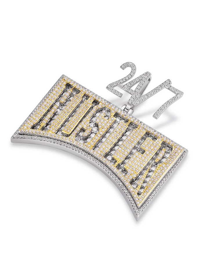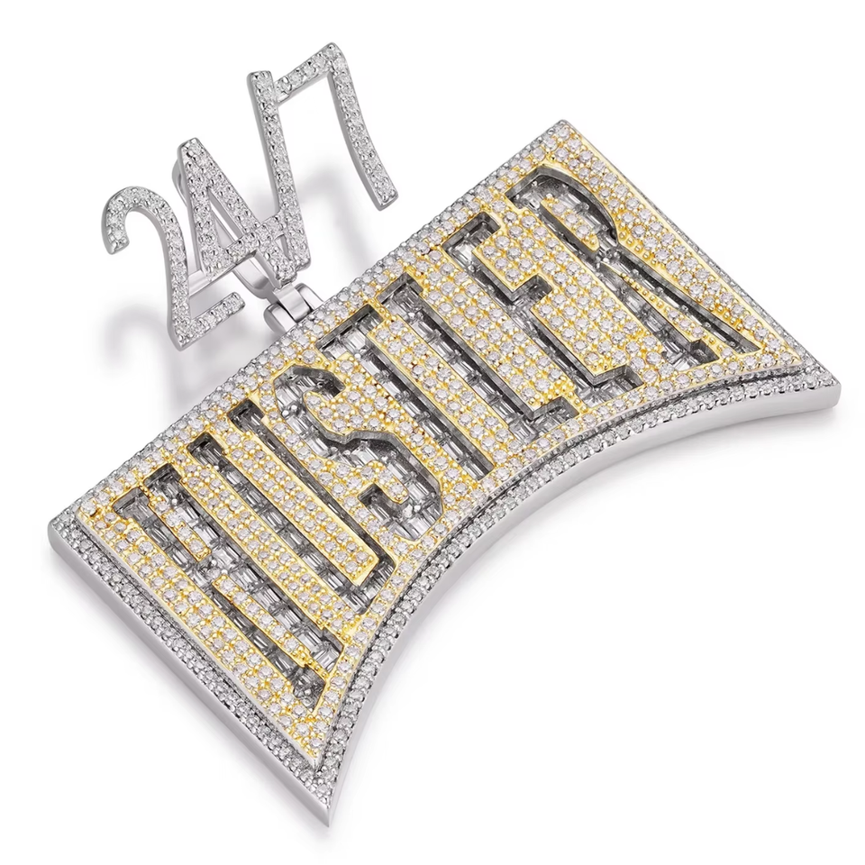 จี้เพชรโมอิสซาไนต์ทรงกลมเจียระไนแบบบริลเลียนท์ ดีไซน์หรูหรา ประดับเพชรเต็มตัว ทำจากเงินแท้ 925 ชุบทอง 14k และโรเดียม สำหรับงานปาร์ตี้ 24/7 Hustler VVS