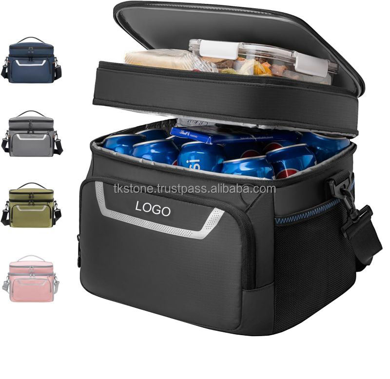 กระเป๋าเก็บความเย็นทำจากโพลีเอสเตอร์ PP กันน้ำได้24กระป๋องดีไซน์สะพายไหล่สองชั้นพร้อมซิปใช้สำหรับปิกนิกไวน์อาหารร้อน