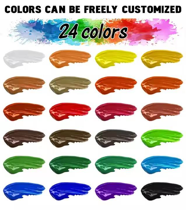ชุดสีอะคริลิค 24 สี ขนาด 60 มล. สำหรับงานศิลปะบนผ้าใบ พร้อมกระดาษรอง