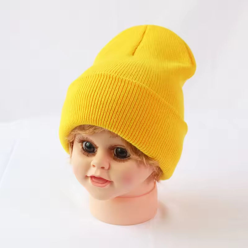 หมวกไหมพรมอะคริลิคถักสำหรับเด็ก24สีสำหรับฤดูหนาวหมวกบีนนี่ชาวประมงสำหรับเด็กทารกใส่โลโก้ตามสั่ง
