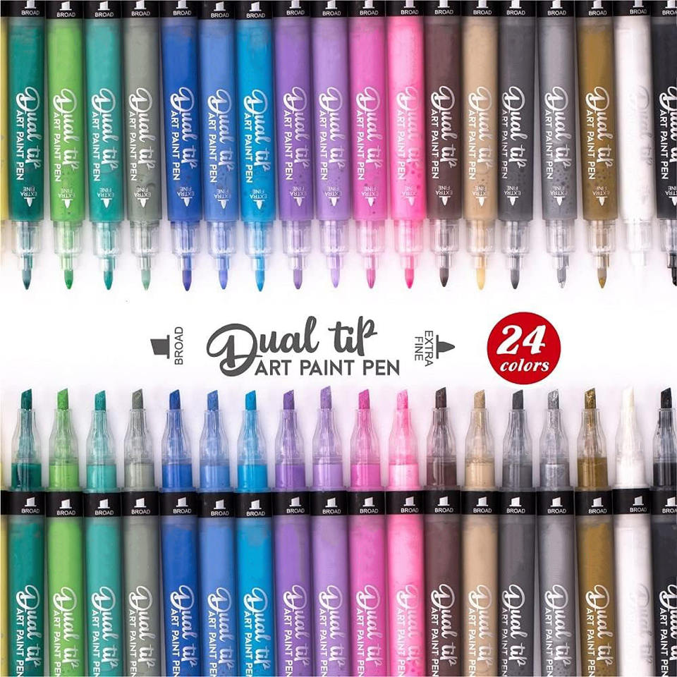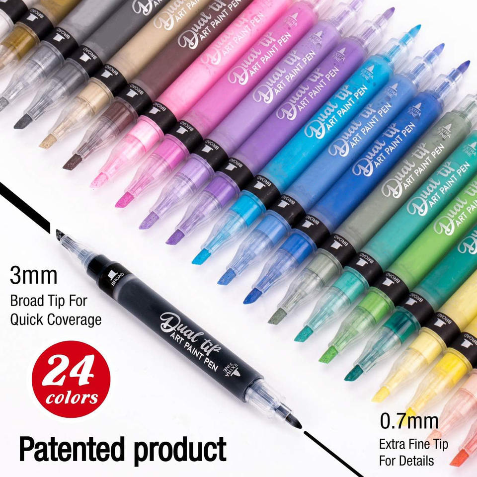 ชุดปากกามาร์กเกอร์อะคริลิค24สี07ปลายสองด้านปากกามาร์กเกอร์สีอะคริลิคสำหรับงานประดิษฐ์ทำมือศิลปะงานวาดภาพวาดและแต่งหน้า