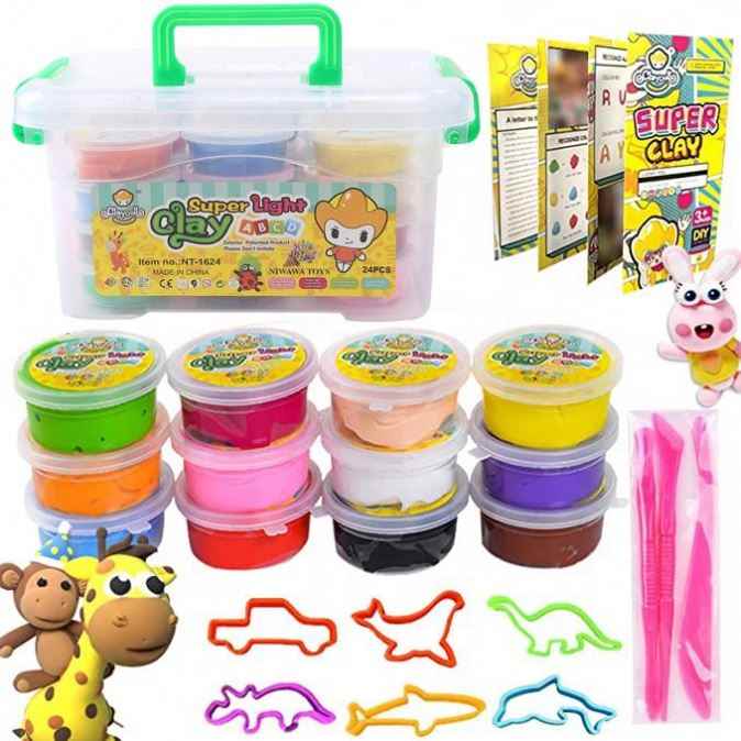 ดินน้ำมันแห้งเร็ว 24 สี ดินปั้นน้ำหนักเบาพิเศษ สำหรับศิลปิน ดินปั้นปลอดภัยและไม่เป็นพิษ