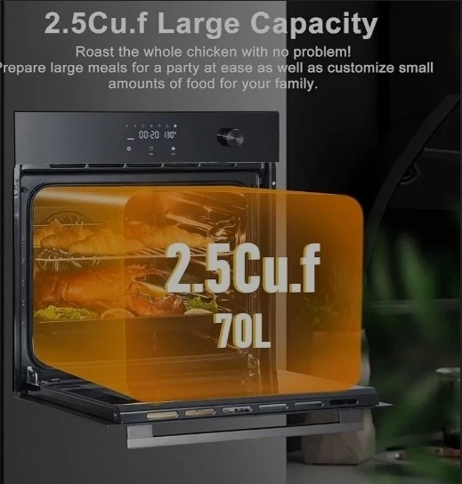 เตาอบไฟฟ้าแบบติดผนัง 24 ช่อง 240 โวลต์ 70 ลิตร 2.5 คิวฟาร์ด สีดำ พร้อมแผงควบคุมแบบสัมผัส รุ่น G66D-Q-A-C