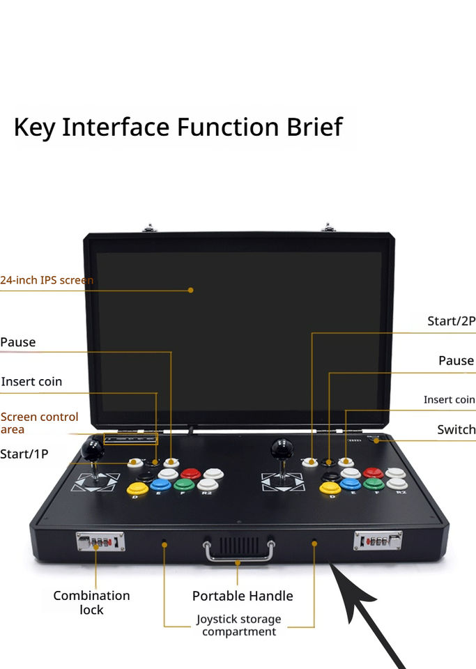 เครื่องเล่นเกมอาร์เคดแบบพับได้ขนาด 24 นิ้ว รุ่น 180 ° จอยสติ๊กแบบเปิดหน้าจอ 2P จอแสดงผล IPS 1080P เกมต่อสู้สไตล์ย้อนยุคสำหรับใช้ในบ้าน บริการ OEM