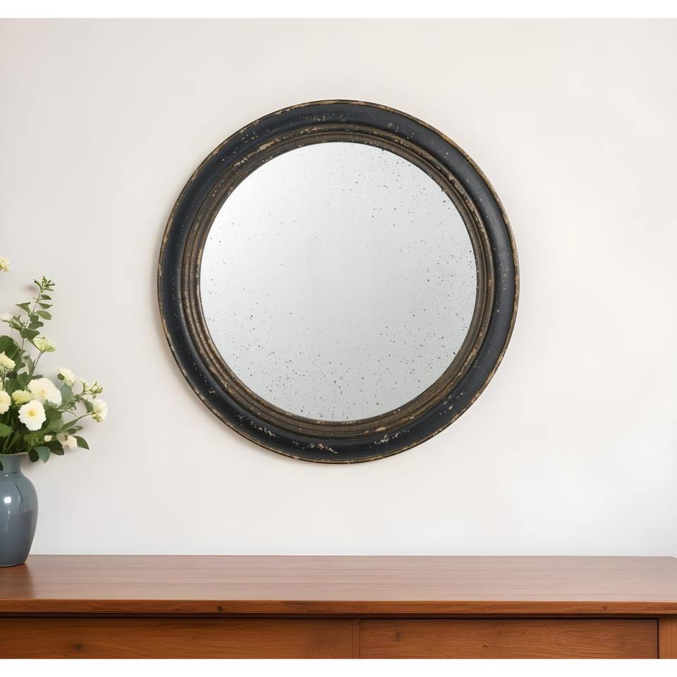 24\" HMS Distressed Dark Brown Wood Round Framed Accent Mirror for Home Decor Wood Crafts Wooden Boxes & Wall Signs